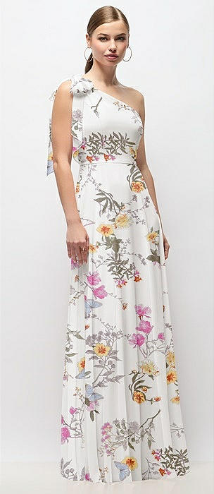 Chiffon One-Shoulder Maxi Dress with Circle Skirt in butterfly botanica ivory