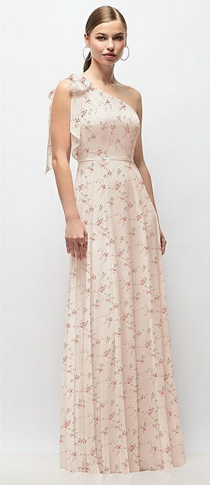 Chiffon One-Shoulder Maxi Dress with Circle Skirt in blush garden