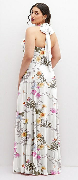 Chiffon Convertible Maxi Dress with Multi-Way Tie Straps in butterfly botanica ivory
