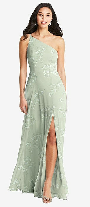 One-Shoulder Scarf Bow Chiffon Junior Bridesmaid Dress in vintage primrose sage