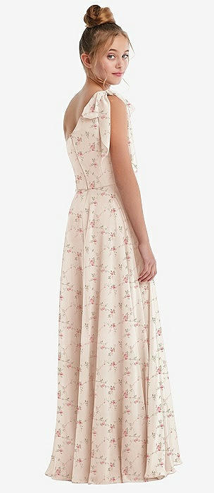 One-Shoulder Scarf Bow Chiffon Junior Bridesmaid Dress in coquette floral print