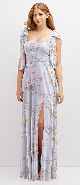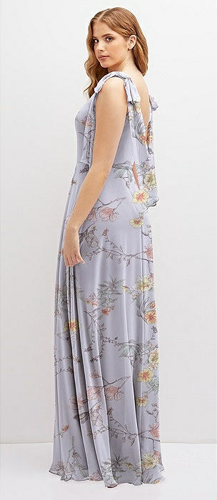 Bow Shoulder Square Neck Chiffon Maxi Dress in butterfly botanica silver dove