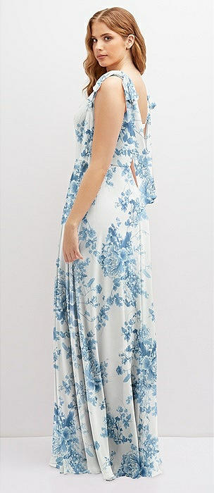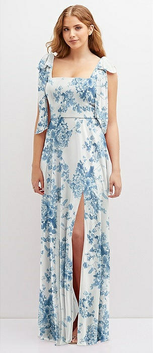 Bow Shoulder Square Neck Chiffon Maxi Dress in cottage rose dusk blue