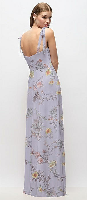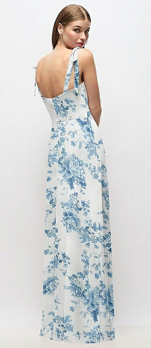 Tie-Shoulder Chiffon Maxi Dress with Front Slit in coquette floral print