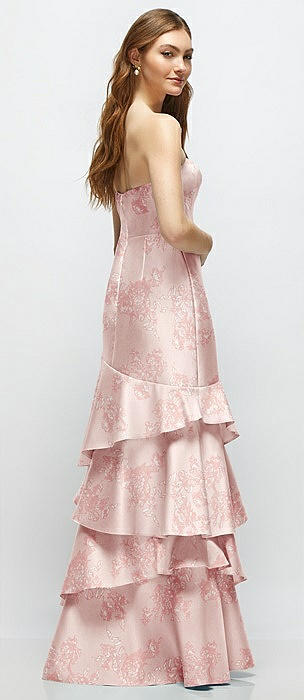 Floral Strapless Satin Drop Waist Gown with Full Skirt in butterfly botanica pink sand