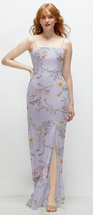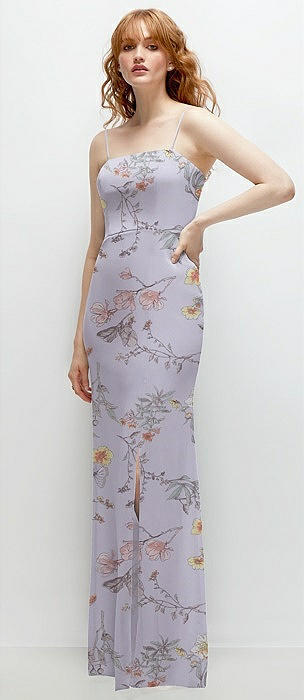Tie-Back Cutout Trumpet Gown with Front Slit in coquette floral print