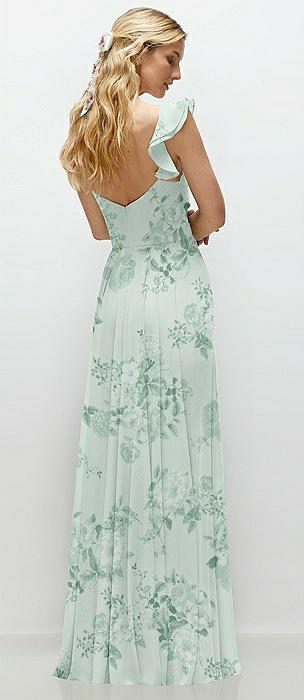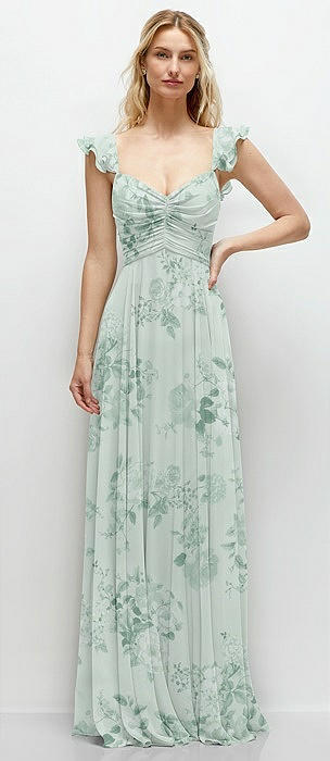 Convertible Ruffle Strap Chiffon Maxi Dress with Full Circle Skirt in mint green floral