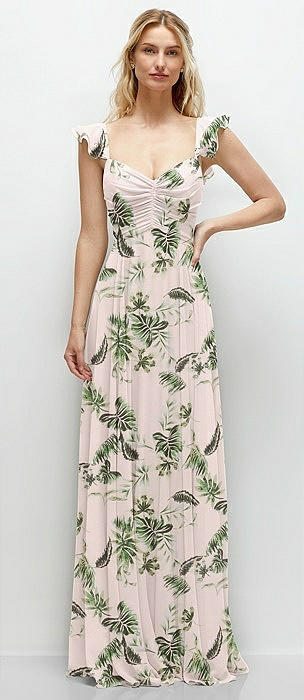 Ruffle Strap Chiffon Bustier Maxi Dress with Ruffle Hem A-Line Skirt in blush garden