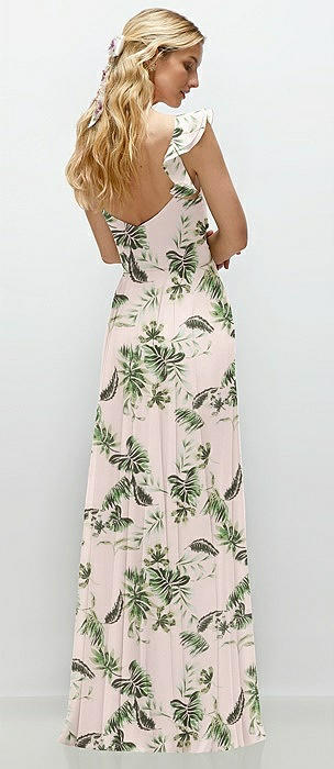 Convertible Ruffle Strap Chiffon Maxi Dress with Full Circle Skirt in palm beach print