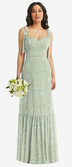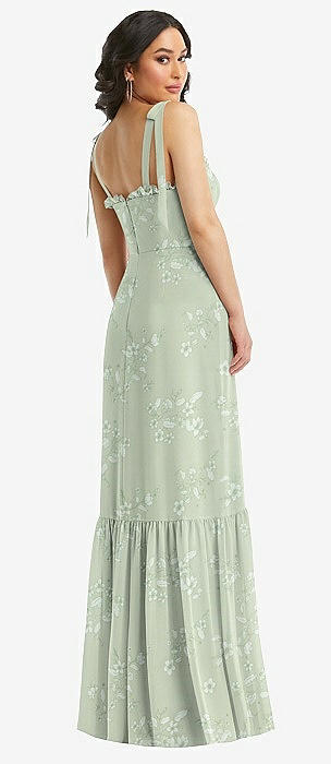 Tie-Shoulder Bustier Bodice Ruffle-Hem Maxi Dress in vintage primrose sage