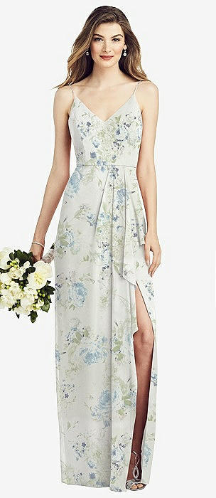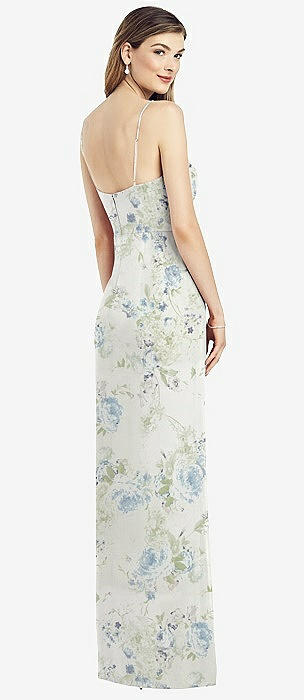 Spaghetti Strap Draped Skirt Gown with Front Slit in mint green floral