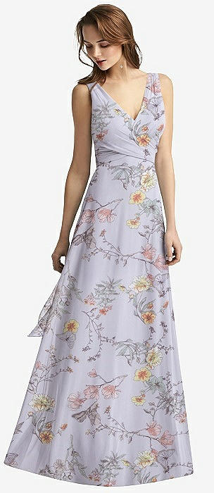 Sleeveless V-Neck Chiffon Wrap Dress in butterfly botanica silver dove