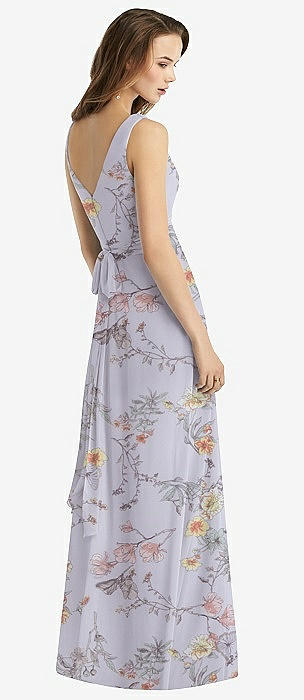 Sleeveless V-Neck Chiffon Wrap Dress in cottage rose dusk blue