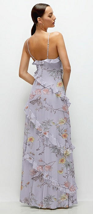 Convertible Ruffle Strap Chiffon Maxi Dress with Full Circle Skirt in butterfly botanica silver dove