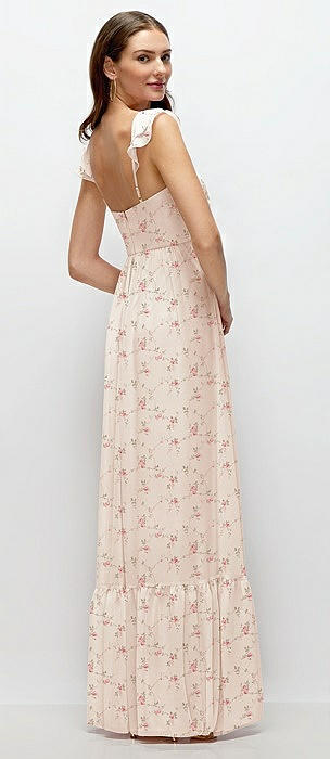 Bustier-Style Chiffon Tiered Ruffle Maxi Dress with Adjustable Straps in coquette floral print