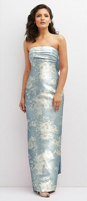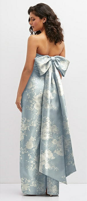 Floral Strapless Draped Bodice Column Dress with Oversized Bow in bow and blossom print