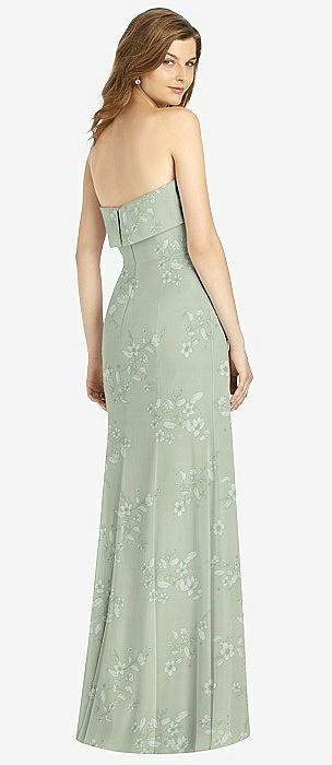 Bow-Shoulder V-Back Chiffon Gown with Front Slit in watercolor print