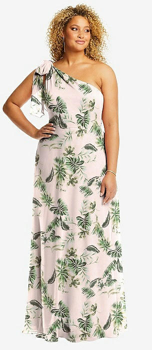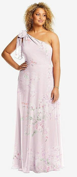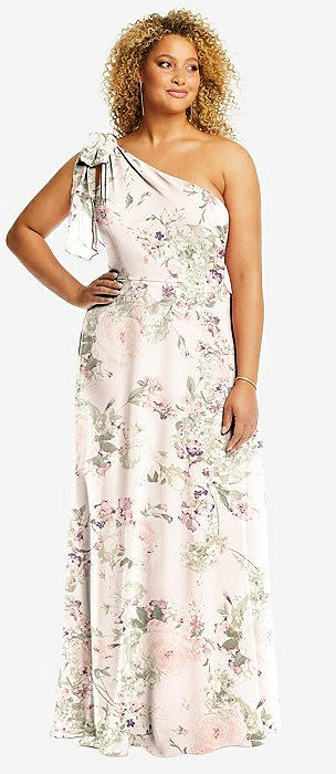 Chiffon One-Shoulder Maxi Dress with Circle Skirt in blush garden