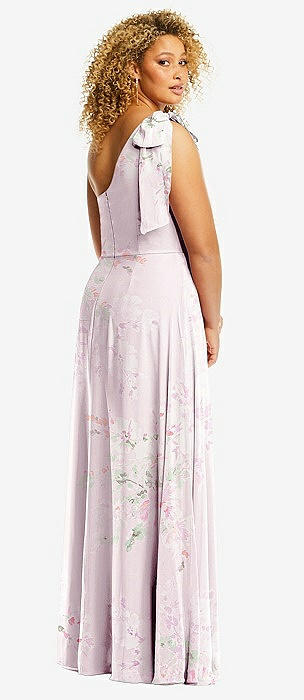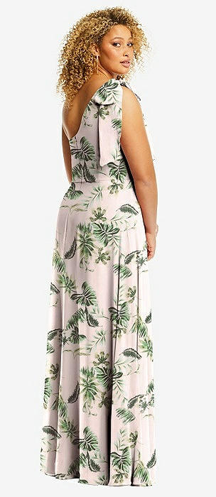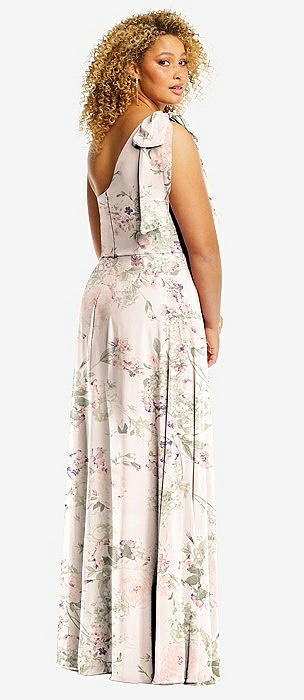 Draped One-Shoulder Maxi Dress with Scarf Bow in blush garden