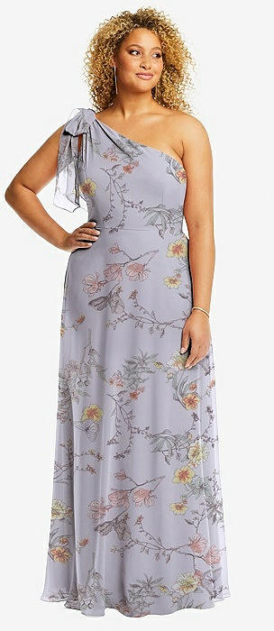 Chiffon One-Shoulder Maxi Dress with Circle Skirt in butterfly botanica silver dove