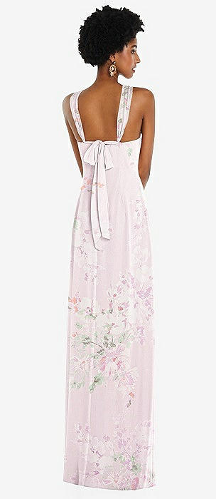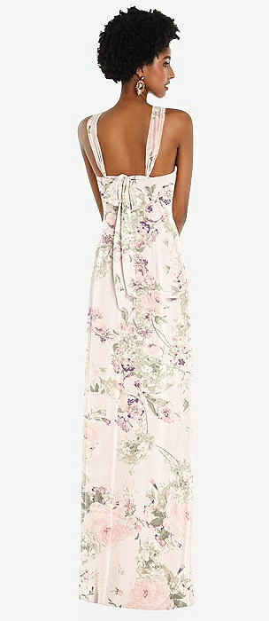 Draped Chiffon Grecian Column Gown with Convertible Straps in coquette floral print