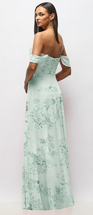 Chiffon Corset Maxi Dress with Removable Off-the-Shoulder Swags in mint green floral