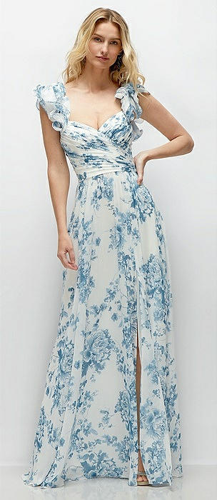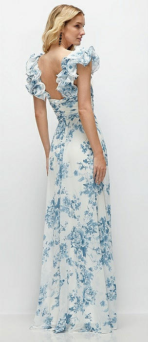 Dramatic Ruffle Edge Strap Chiffon Maxi Dress in butterfly botanica silver dove