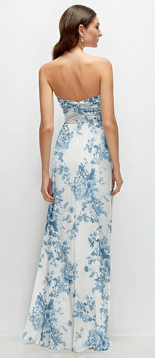 Strapless Pleated Surplice Chiffon Maxi Dress with A-Line Skirt in butterfly botanica silver dove