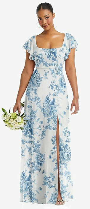 Flutter Sleeve Scoop Open-Back Chiffon Maxi Dress in cottage rose dusk blue