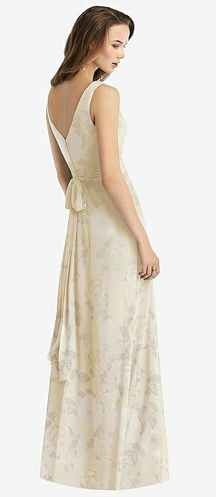 Sleeveless V-Neck Chiffon Wrap Dress in butter yellow floral