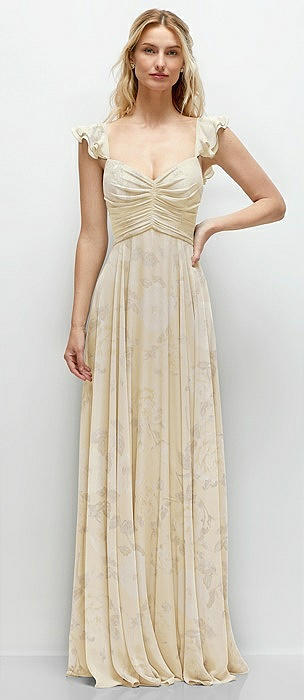 Tiered Chiffon Maxi A-line Dress with Convertible Ruffle Straps in butterfly botanica ivory