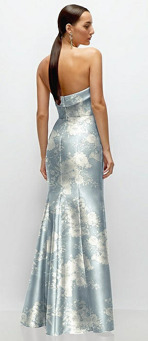 Strapless Cuff Neckline Floral Satin Trumpet Gown in cottage rose larkspur