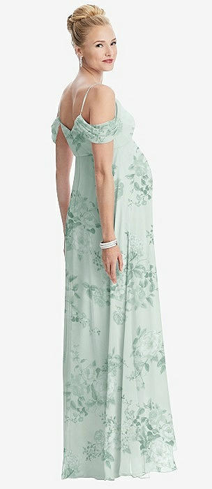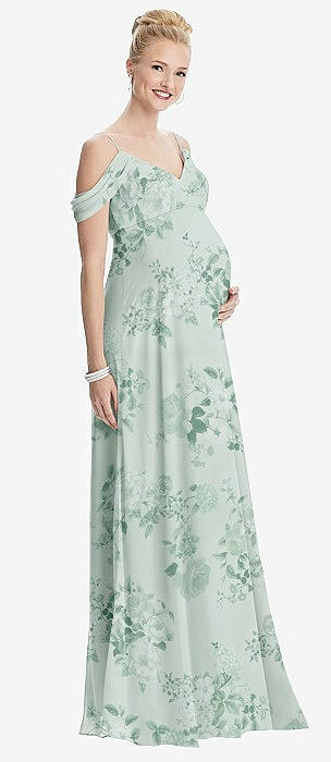 Draped Cold-Shoulder Chiffon Maternity Dress in mint green floral