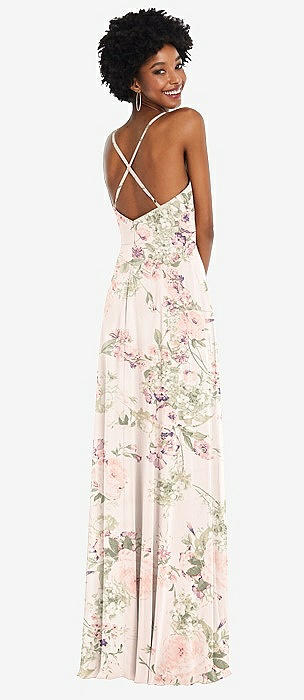 Faux Wrap Criss Cross Back Maxi Dress with Adjustable Straps in blush garden
