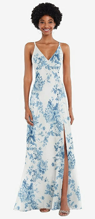 Faux Wrap Criss Cross Back Maxi Dress with Adjustable Straps in bleu garden