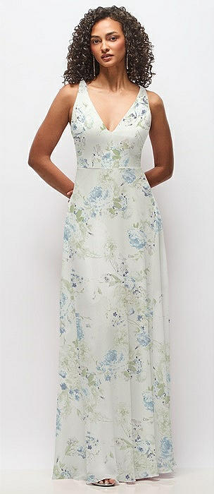 Deep V-Neck Chiffon Maxi Dress in cottage rose dusk blue