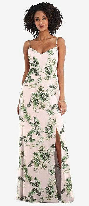 Cowl Neck Chiffon Maxi Dress with Hand-Worked Petal Straps in palm beach print
