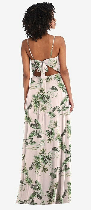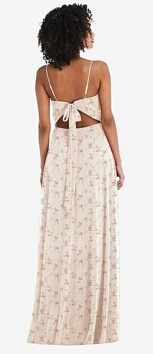 Tie-Back Cutout Maxi Dress with Front Slit in coquette floral print