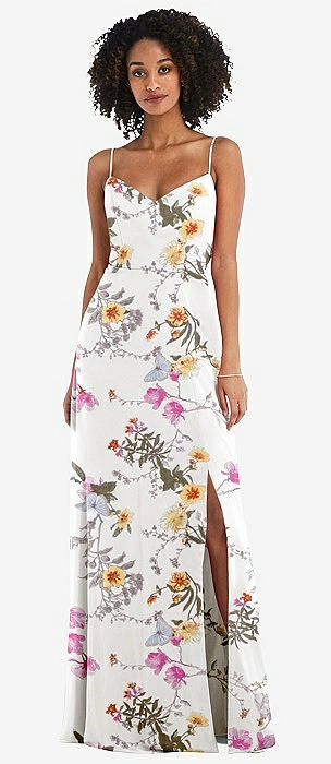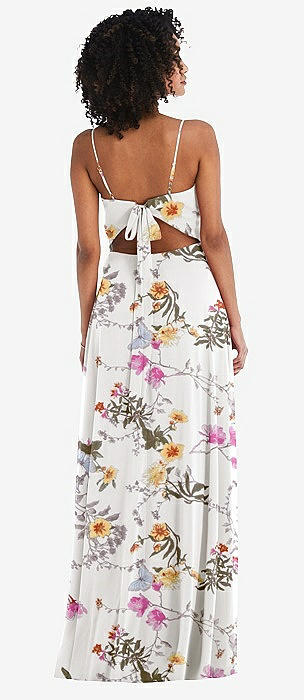 Tie-Back Cutout Maxi Dress with Front Slit in butterfly botanica ivory