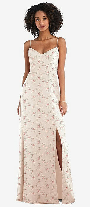 Floral Satin Corset Maxi Dress with Ruffle Straps & Skirt in butterfly botanica pink sand