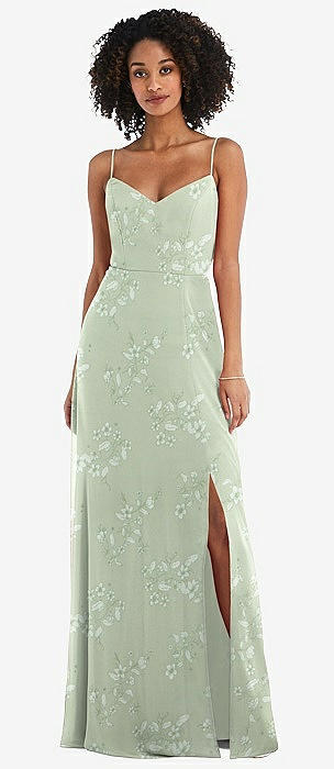 Cowl Neck Chiffon Maxi Dress with Hand-Worked Petal Straps in vintage primrose sage