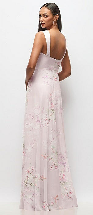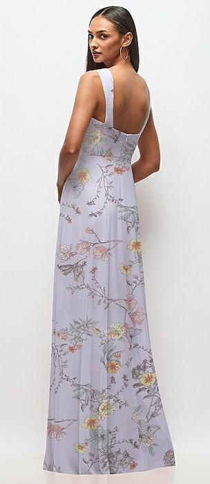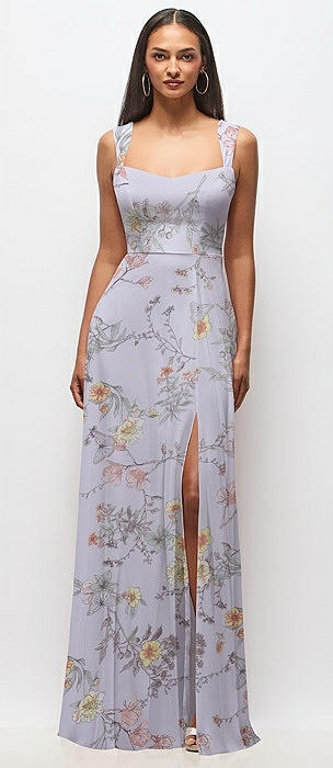 Chiffon Corset Maxi Dress with Removable Off-the-Shoulder Swags in butterfly botanica silver dove