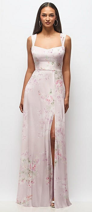 Contoured Wide Strap Sweetheart Maxi Dress in blush garden
