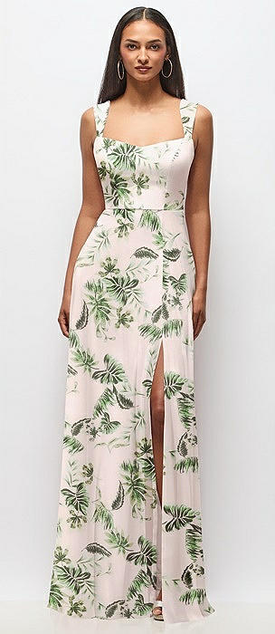 Contoured Wide Strap Sweetheart Maxi Dress in palm beach print
