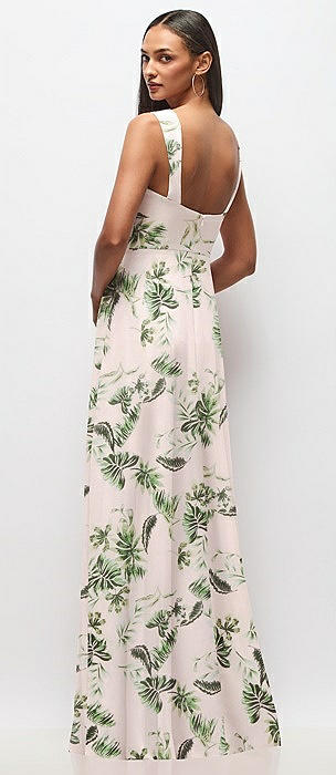 Chiffon Corset Maxi Dress with Removable Off-the-Shoulder Swags in palm beach print