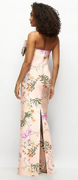 Strapless Floral Satin Column Maxi Dress with Oversized Bow in butterfly botanica pink sand