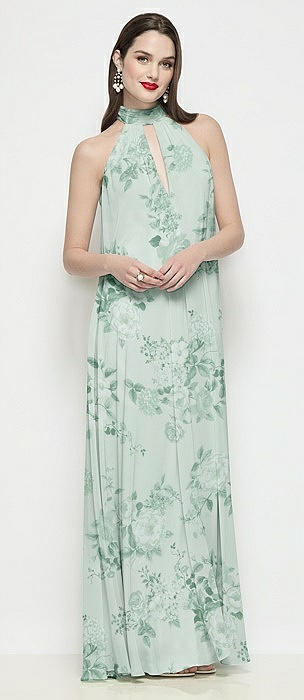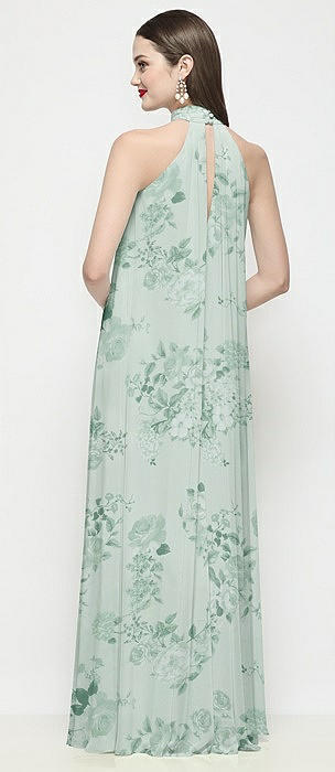 High Neck Halter Backless Maxi Dress in mint green floral
