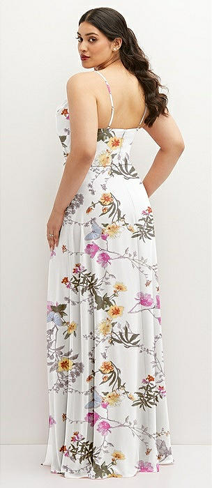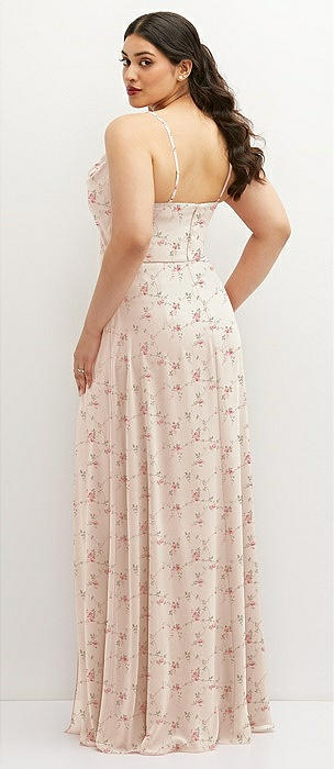 Cowl Neck Chiffon Maxi Dress with Hand-Worked Petal Straps in coquette floral print
