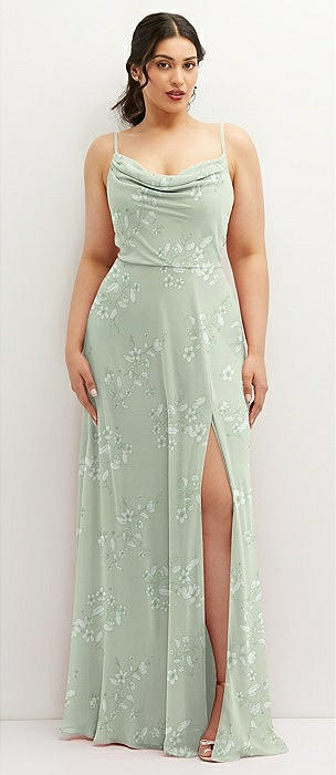 Soft Cowl-Neck A-Line Maxi Dress with Adjustable Straps in mint green floral
