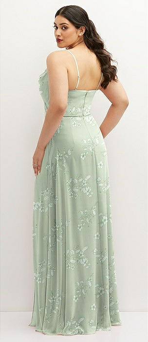 Cowl Neck Chiffon Maxi Dress with Hand-Worked Petal Straps in mint green floral